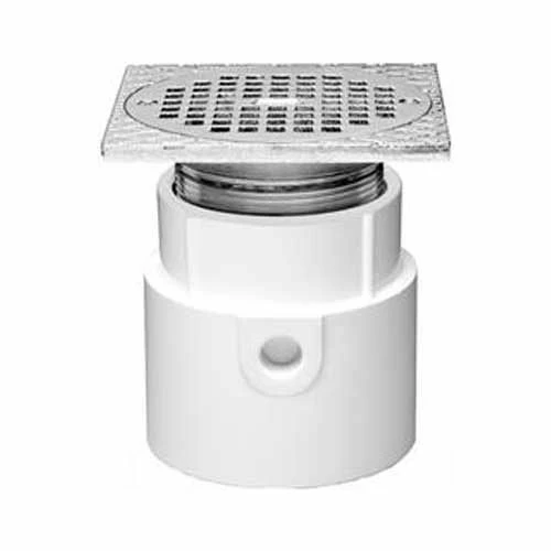 Oatey 72298 4″ PVC Adjustable General Purpose Pipe Fit Drain with 6″ Cast Nickel Grate & Square Top